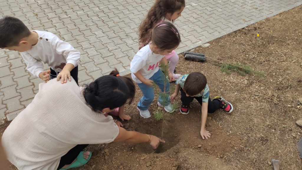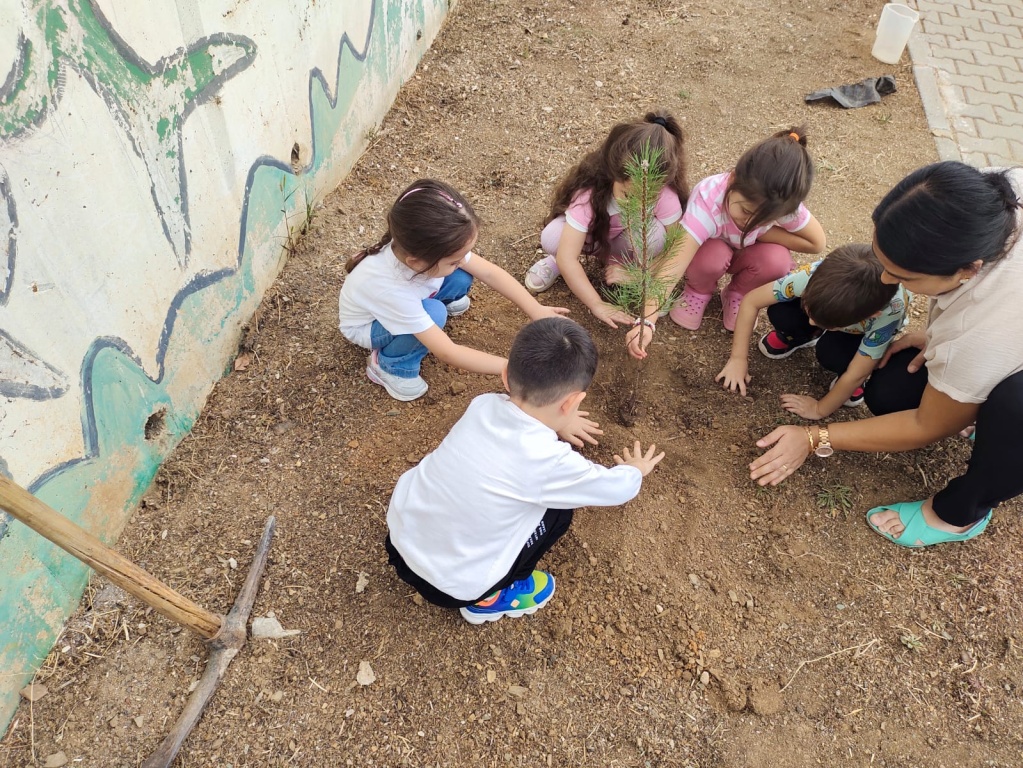 “Her Çocuk Bir Fidan, İlk Ders Yeşil Vatan” anlayışıyla okulumuzda ilk gün bahçemize çocuklarla fidanlarımızı diktik.